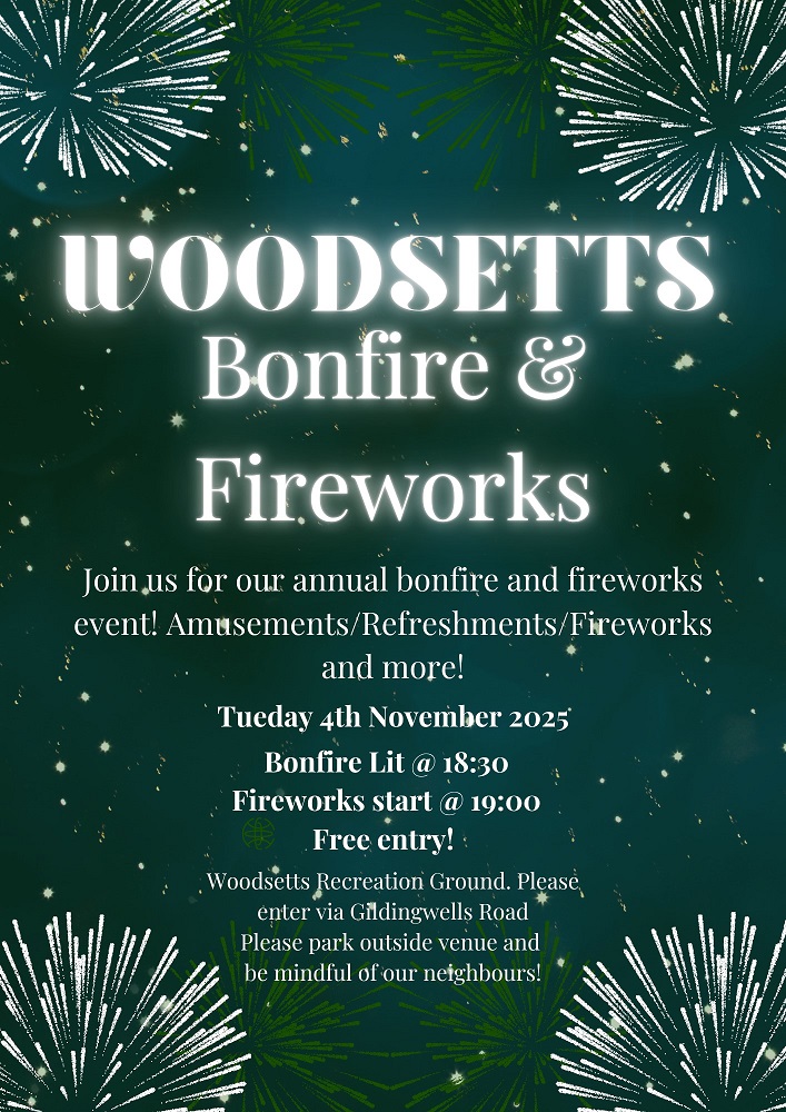 WOODSETTS BONFIRE & FIREWORKS EVENT 4/11/25